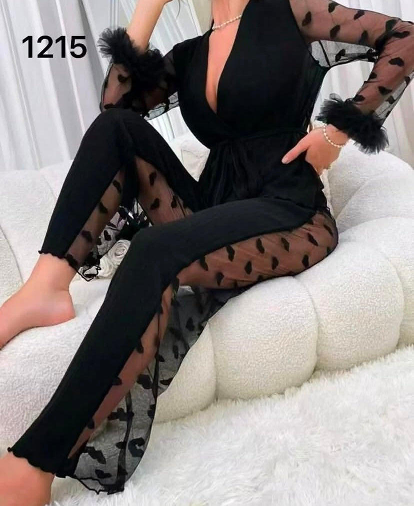 Laissez-vous séduire par cette combinaison de nuit chic et sensuelle, pensée pour sublimer la silhouette tout en offrant un confort absolu. Son design raffiné associe des matières douces et extensibles à des touches de transparence délicates, pour un rendu à la fois élégant et féminin.