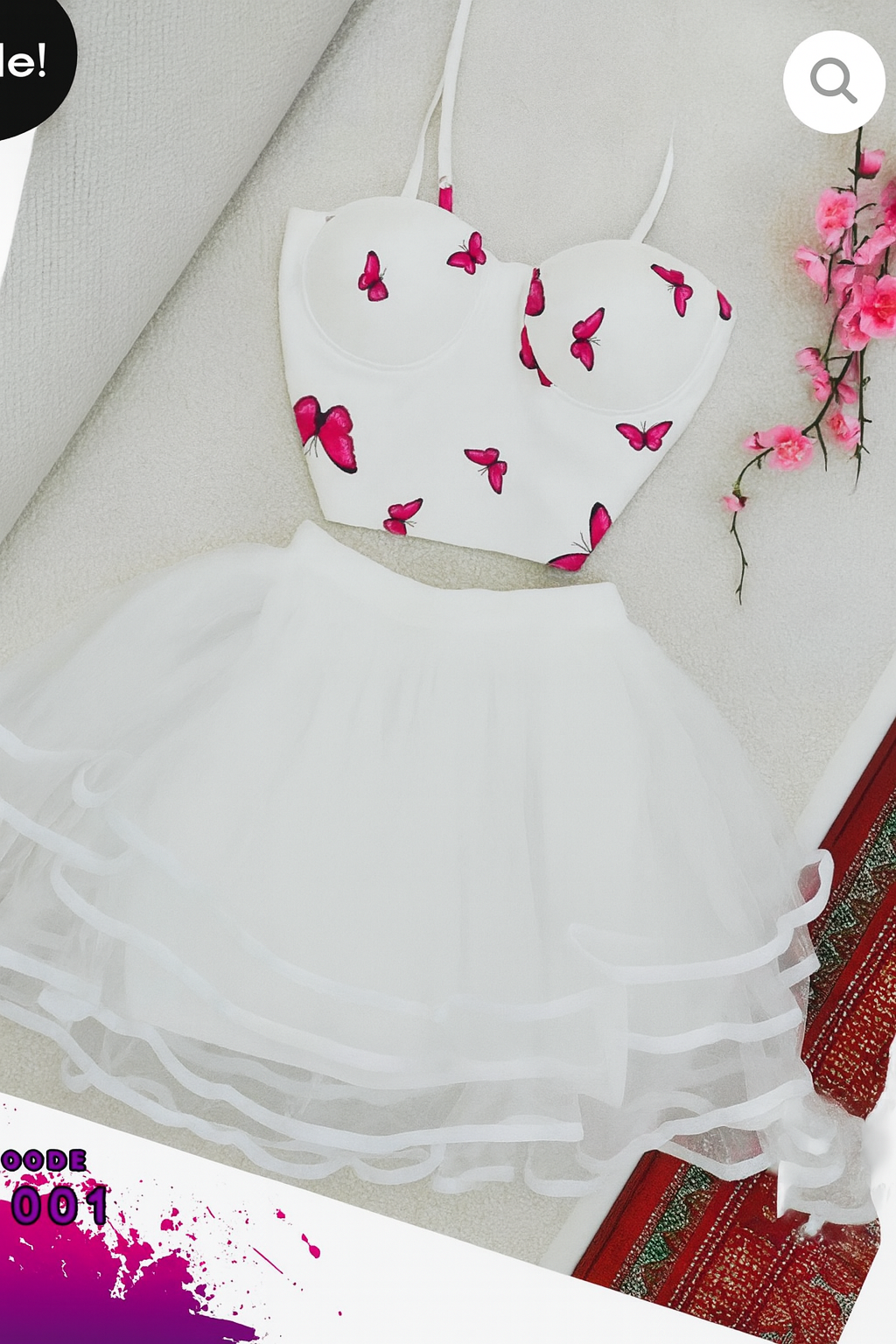 Ensemble Nuisette 2 Pièces Papillons Dentelle Transparente - Corset Crop Top & Mini Jupe A-Line