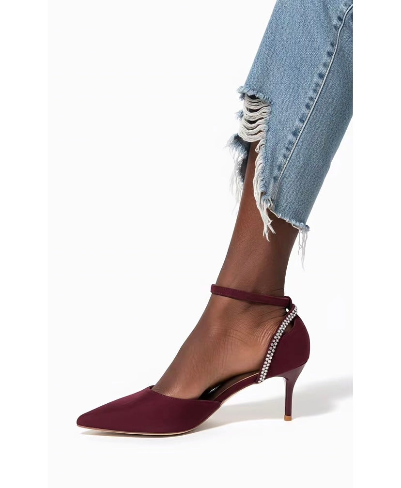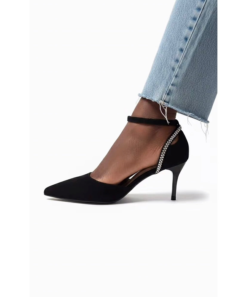 Escarpins Pointus à Talon Fin avec Bride Cheville & Détails Strass